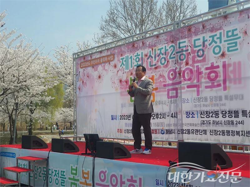 "2023년 하남 봄꽃예술 문화축제"가 사)한국연예예술인 총연합회 하남지회(회장 박미정), 신장 2동 주민자치회(회장 조창환)와 함께 제1회 신장2동 "당정뜰 봄봄음악회"의 연합공연으로 코로나로 인해 지난 3년간 대면 공연이 전무했던 탓에 봄맞이 행사에 대한 하남시민들의 관심과 참여가 뜨거웠다