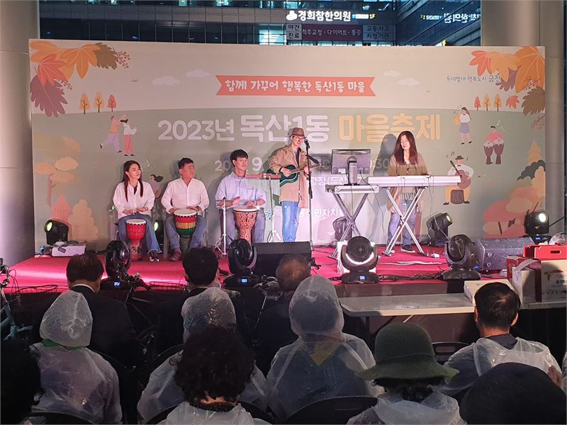 이날 축제는 오전 10시부터 체험부스와 물품 부스를 운영하고 오후 5시 자치회관 공연이 이어졌다. 비오는 가을음악회는 금천구민 노래자랑 순서와 금천50플러스센터 음찾사밴드의 축하공연이 펼쳐져 관객들의 감성을 끌어냈다.