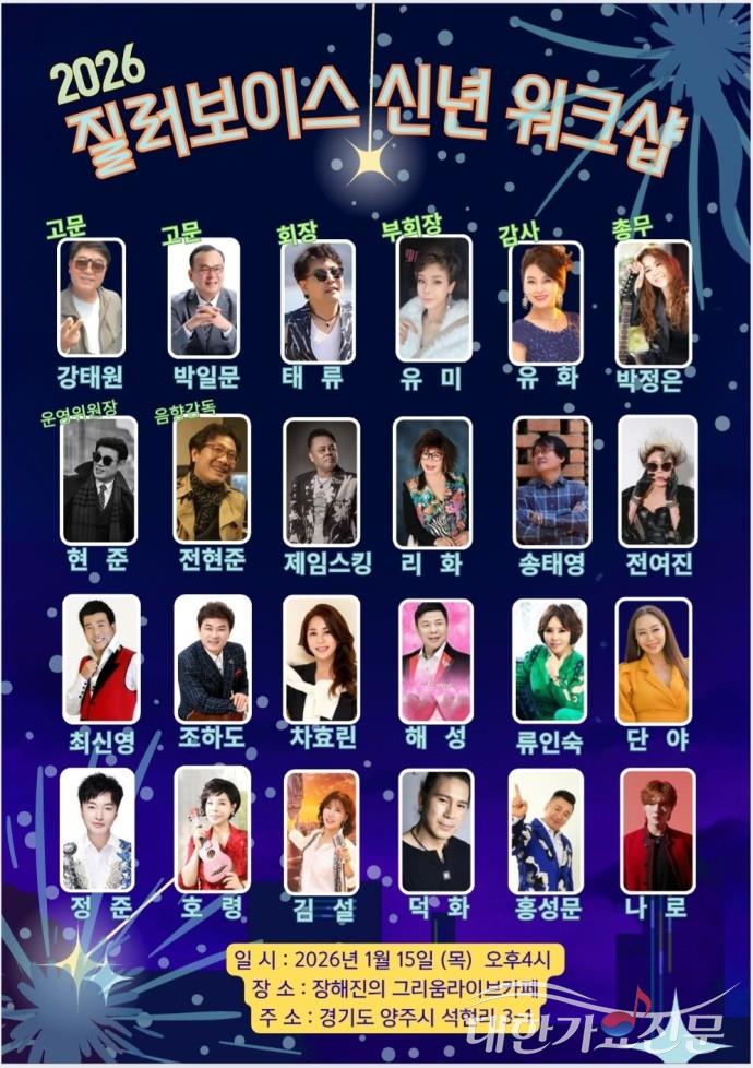 질러보이스는 오는 1월 15일(목) 오후 4시, 경기도 양주시 석현리에 위치한 ‘장해진의 그리움 라이브카페’에서 ‘2026 질러보이스 정기 신년 워크샵’을 열고 새해 첫 공식 행보에 나선다고 밝혔다.