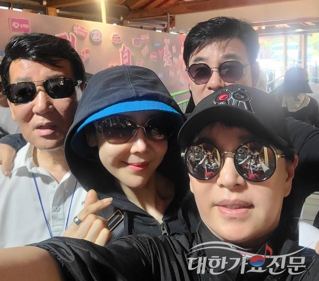 가수 승재, 현준, 민서연이 공연 전 함께 포즈를 취하고 있다.